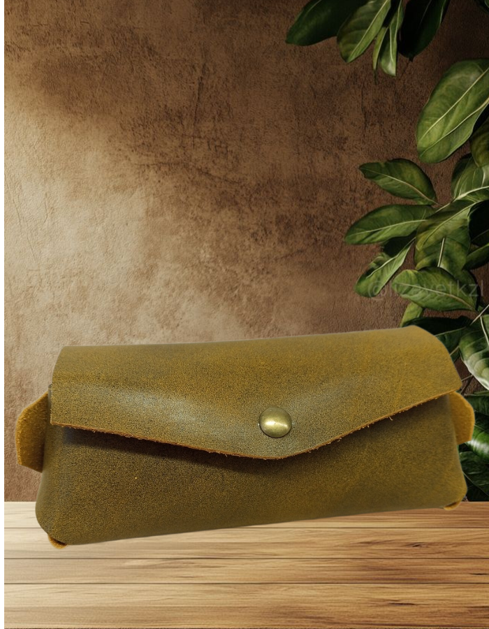 Кожаный футляр для очков. Жёлто-зеленый. На магните