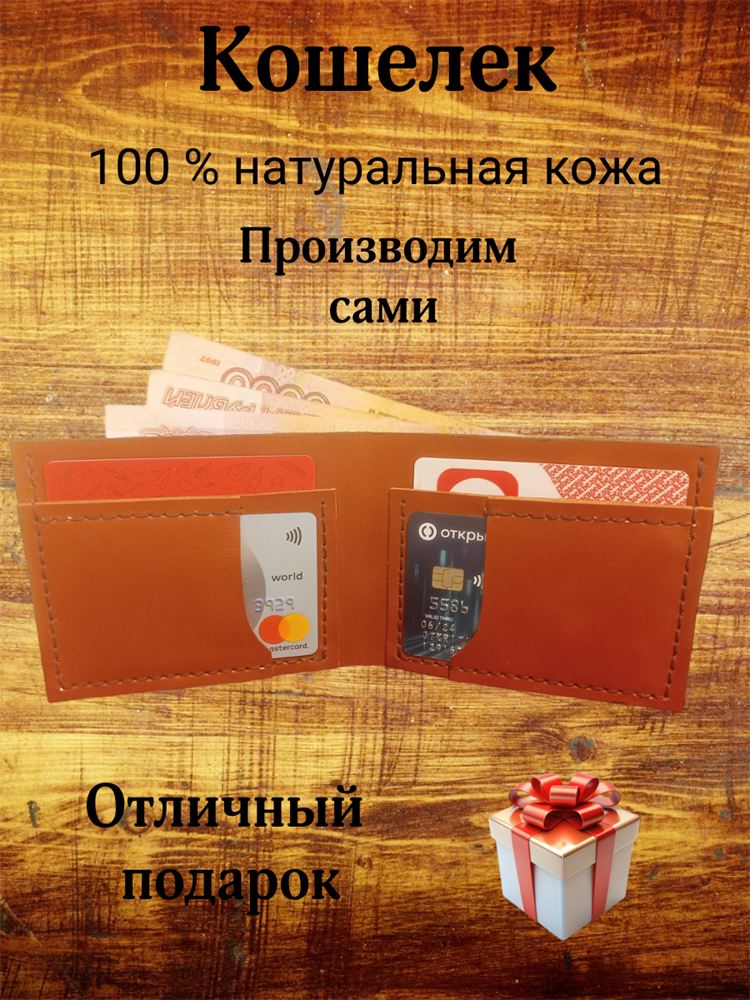 Кожаный кошелек (бумажник) для банковских карт и наличных денег.