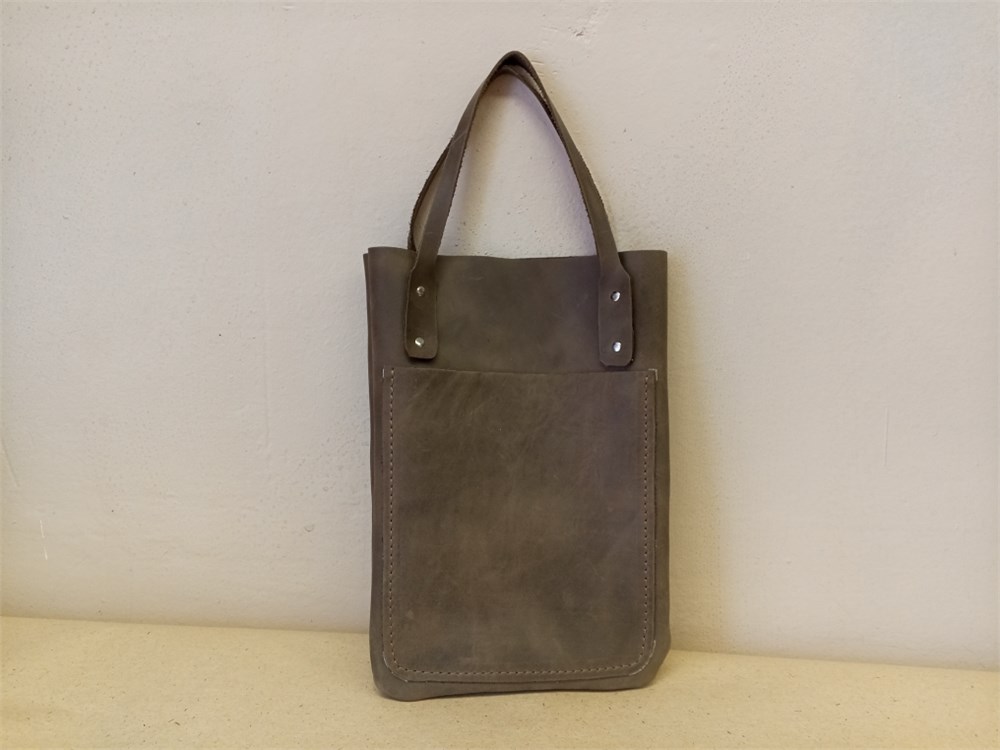 Сумка шоппер. Женская. Детская. Серый цвет кожи