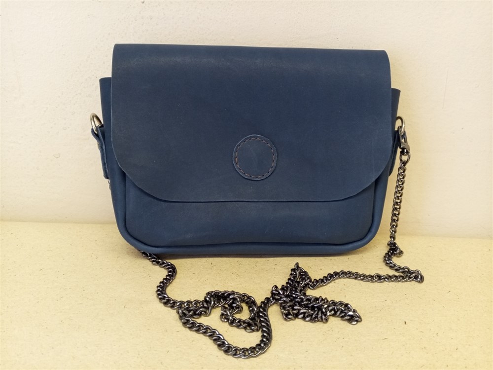 Сумка женская через плечо кросс-боди натуральная кожа, тёмно-синяя