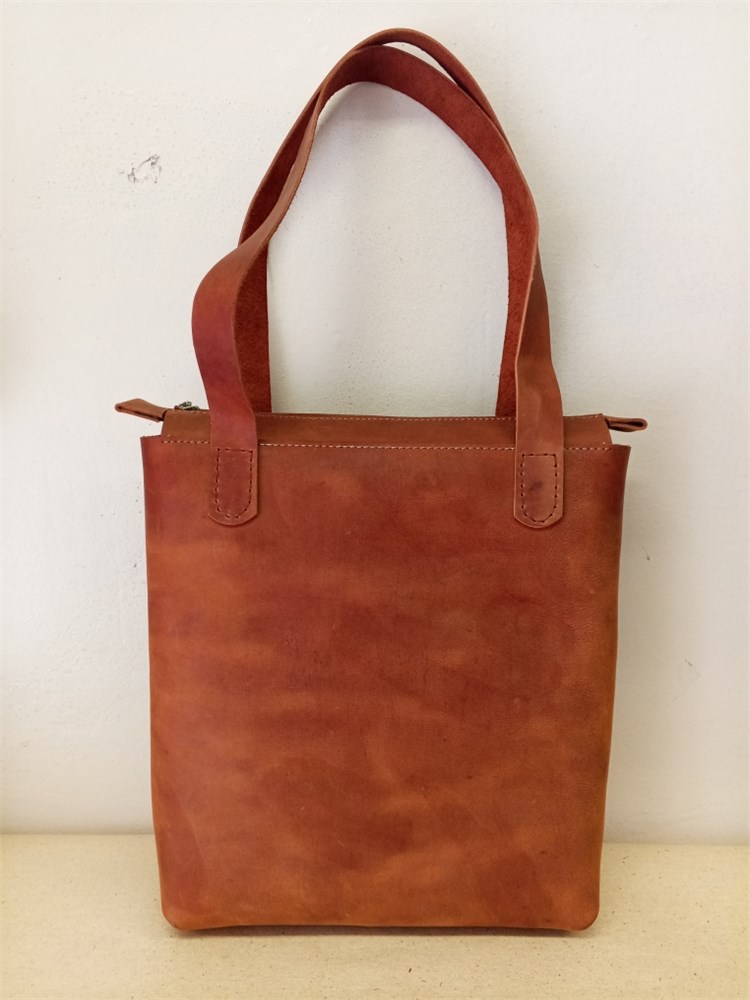 Сумка женская шоппер на молнии с ручками натуральная кожа, светло - коричневый