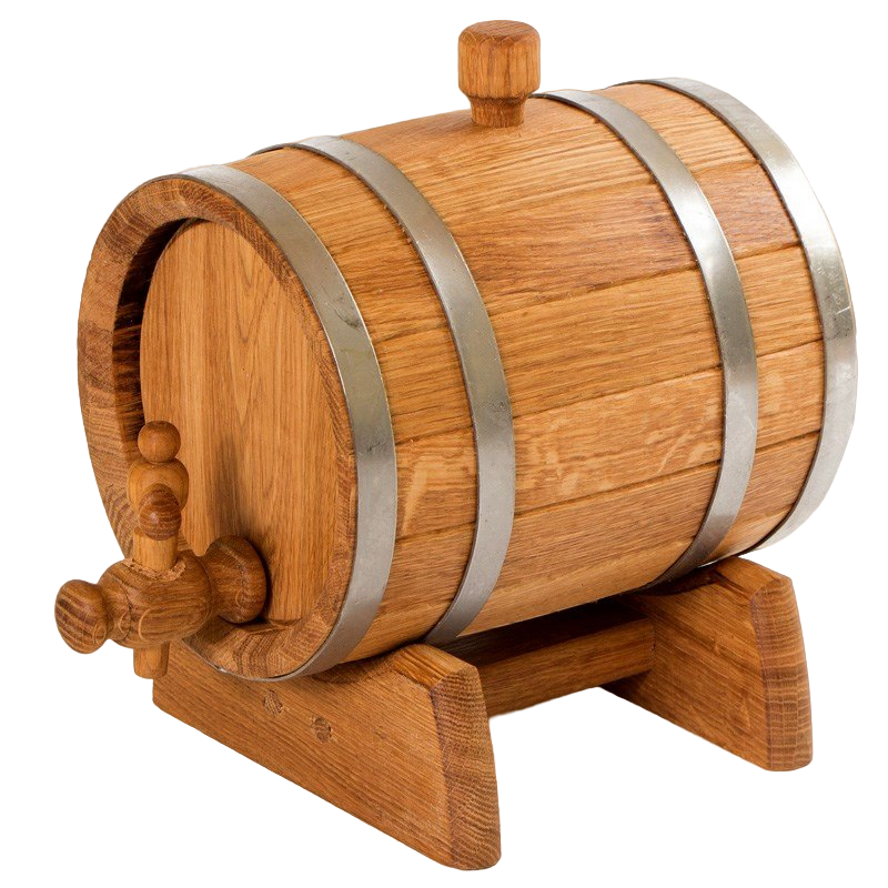 - Комплект поставки: бочка, подставка, чопик, деревянный краник.